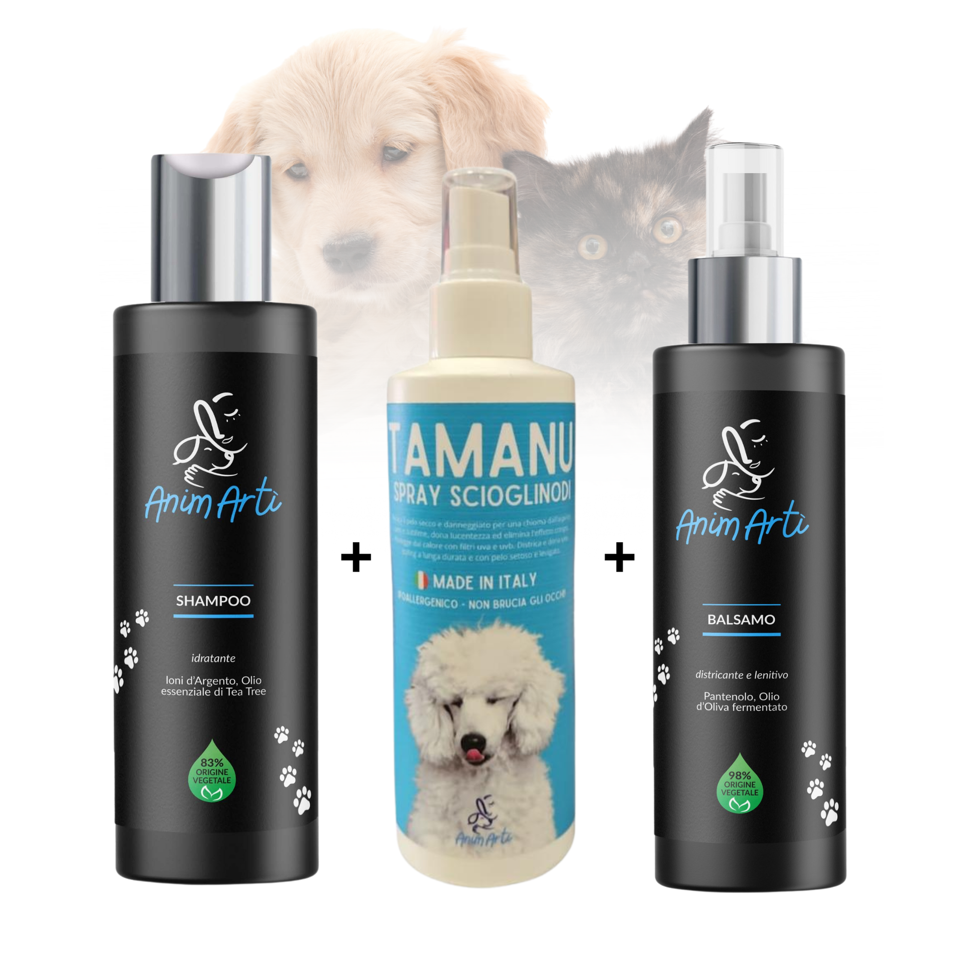 Il Kit Premium Nuvola di Seta racchiude una routine avanzata di cura quotidiana grazie allo Shampoo Idratante, al Balsamo Spray Districante e al Tamanu Spray Scioglinodi. Una combinazione studiata per detergere con delicatezza, nutrire la cute e il manto, facilitare la spazzolatura e prevenire la formazione dei nodi, lasciando il pelo morbido, setoso e protetto.
